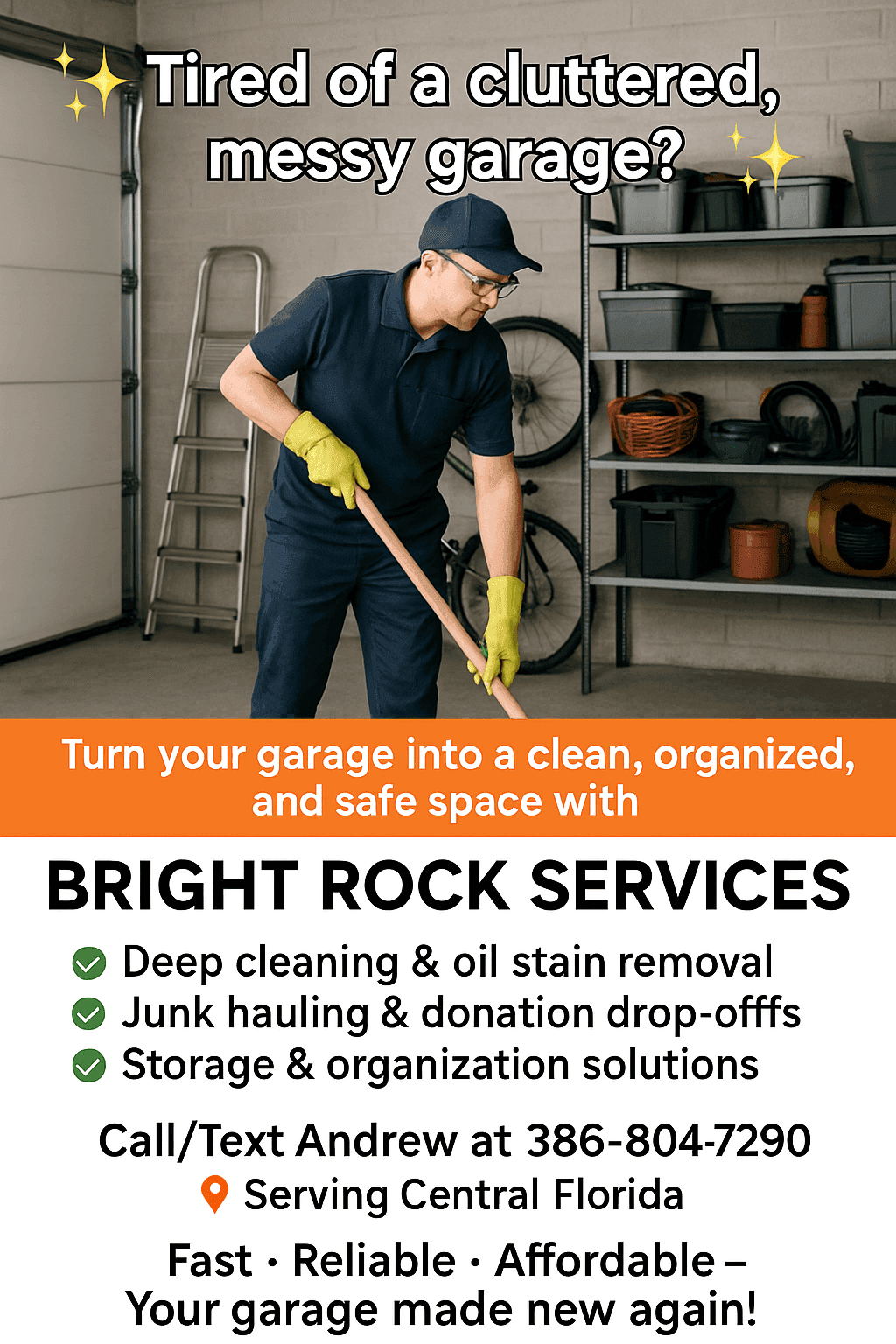 We specialize in transforming cluttered, dirty garages into clean, organized, and functional spaces. From deep cleaning and oil stain removal to junk hauling and storage solutions, we handle it all so you can enjoy a safer, more usable garage. Fast, reliable, and affordable — we make your garage look brand new again. Coming Soon!